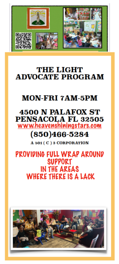 Please keep this ministry in your prayers and donate at heavenshiningstars.com/donate. We would love it if you visited our center at 4500 N Palafox St, Pensacola, FL 32526, to volunteer. Contact us at (850)466-5284 for more questions.